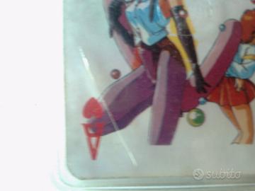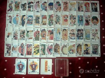 -Un mazzo di carte da poker di Japan Magazine del 1992,usate,in stato abbastanza buono,52 carte,ognuna con un'immagine diversa presa da diversi cartoni animati +2 jolly + una carta con la scritta Japan Magazine.Le carte sono conservate nell'apposita custodia di plastica,che ha un angolo spezzato e alcuni graffi/incrinature sul davanti. 25 E