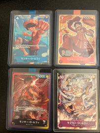 Vendo il seguente lotto, i prezzi delle carte sono stati selezionati da Card Market prendendo come riferimento il primo prezzo dal primo venditore italiano. Monkey D. Luffy P- 021 V1. Monkey D. Luffy P- 041 V2 Monkey D. Luffy ST13-003 V1. Monkey D. Luffy P rarità L Monkey D. Luffy P-055 V2. Monkey D. Luffy P-035. Monkey D. Luffy P-80 Monkey D. Luffy Starter Deck. Sabo ST13-001 V1 Portgas D. Ace ST13-002 V1. Sanji P-034. Rorinoa Zoro P-045. Sabo P-044. Buggy. P-084. Momonosuke. P- 064.