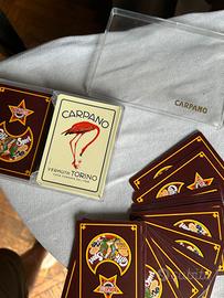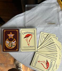 Il marchio Carpano è pioniere nella produzione del vermouth, un vino aromatizzato inventato a Torino nel 1786 da Antonio Benedetto Carpano. La carta mostra un fenicottero stilizzato e la scritta "VERMUTH TORINO" con l'indicazione "CASA FONDATA NEL 1786".