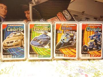 OGNI MAZZO È COMPOSTO DA 32 CARTE CHE RIPORTANO OGNUNA LA FOTO DI 1 UNO DEI TANTI TIPI DI QUAD ESISTENTI, COMPLETA DELLA SUA DESCRIZIONE DETTAGLIATA, DELLE SUE TANTE E CURIOSE CARATTERISTICHE QUALI VELOCITÀ E PESO ETC. LE CARTE SONO REALIZZATE IN CARTONCINO RESISTENTE, TELATO, CHE LE RENDE MOLTO RESISTENTI.