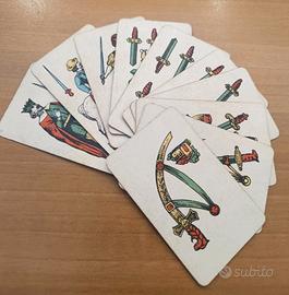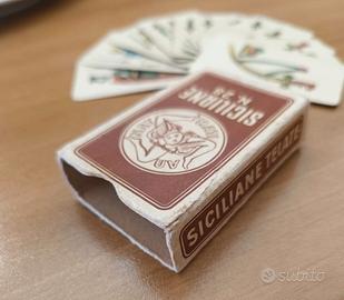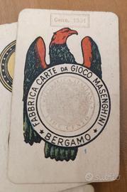 Mazzo di carte siciliane di 74 anni fa, Masenghini Bergamo di R. Lombardini, datate gennaio 1951. Mazzo completo ed in buone condizioni; anche la scatola, di cui manca solo la chiusura superiore.