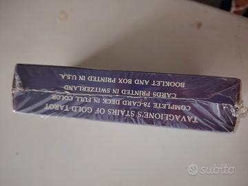 Mazzo di tarocchi Stairs of Gold Tarot creato daGiorgio Tavaglione. Editore:U.S.Games Systems. Anno di pubblicazione:1997 (prima edizione 1979). Contenuto:78 carte con libretto di istruzioni. Dimensioni:Le carte misurano circa 7 x 13 cm. Sigillate