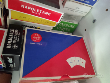 Principalmente da scopa, disponibili tanti mazzi di diverse regioni. Alcuni mazzi sono più rari, altri meno. Provengono direttamente dalla vecchia fabbrica Masenghini da chi ci lavorava e che nel corso degli anni, ha messo da parte questi mazzi di cui alcuni edizione speciale e introvabili, custoditi gelosamente. Poi ci sono anche alcuni mazzi napoletani e siciliani in triplex Dal Negro e Modiano. Le carte partono da 30 cadauno per le lombarde, a 50 le siciliane masenghini, a 70 le napoletane. Per piu mazzi faccio uno sconto.