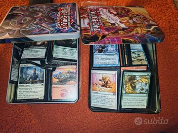 Salve valuto offerte per carte YuGiOh e magic ,vendo in blocco , come in foto vendo tutti i mazzi di YuGiOh ancora sigillati con pellicola(la confezione esterna in uno o due si è aperta con il tempo ma il deck dentro e ancora sigillato),bustine sempre di YuGiOh chiuse e due scatole piene di carte di magic usate .