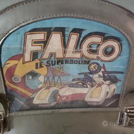 La cartella si presenta integra , senza rotture o pezzi mancanti e reca l'immagine della serie di cartoni animati dell'epoca intitolata Falco il super bolide (マシンハヤブサ,?, Machine Hayabusa) che era una serie televisiva anime, di genere spokon, ovvero con ambientazione sportiva, composta da 21 episodi prodotti dalla Toei Animation nel 1976, ideata da Mikiya Mochizuki e diretta da Yugo Serikawa.