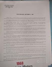 Cartella stampa originale dell'American Motors per la presentazione dei modelli del 1967. Completa di 7 foto dei 10 modelli. Lingua tedesca
