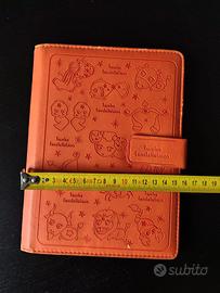 Cartellina rigida arancione in similpelle, con copertina imbottita con disegni dei segni zodiacali.