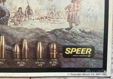 Insegna pubblicitaria colorata di un tavolo di ricarica per munizioni Speer Bullets in metallo