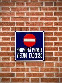 VECCHIO CARTELLO STRADALE SMALTATO ANNI 60/70 PROPRIETA' PRIVATA VIETATO L'ACCESSO SANO, SOLIDO E BEN CONSERVATO SMALTO LUCENTE E SPESSO NO RUGGINE POCHISSIMA SUL RETRO UNICO NEO UN RITOCCO SUL BIANCO IN ALTO VISIBILE IN FOTO MISURA 40 X 40