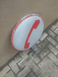 Vendo cartello vintage sip. Lo stato di conservazione generale è buono. Sono presenti normali segni del suo vissuto. NON VI SONO AMMACCATURE!! Misure: Diametro cartello 48cm, Lunghezza tot 76cm. Si effettuano spedizioni a carico del destinatario. Prezzo: 80€ trattabile