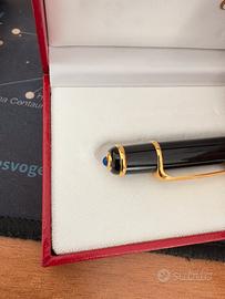 Penna roller Diabolo de Cartier in pregiato composite nero con finiture in oro e cabochon in resina blu.