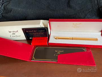 Le must de Cartier originale Penna stilografica, modello pave’, placcata oro 18k, in confezione originale mai usata.
