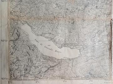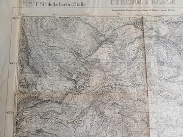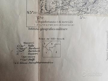 Cartina topografica originale da collezione dell' Istituto Geografico Militare, risalente al 1931, scala 1: 25000. Edizione storica prebellica di alta precisione, parte della "Carta d'Italia". Rappresenta la zona del lago di Ceresole Reale e della valle dell'Orco nel Canavese, con dettagli fedeli del paesaggio montano e delle infrastrutture dell'epoca. Dimensioni 58x51 cm, dimensione adatte anche per essere incorniciata. Tracce del tempo come da foto.