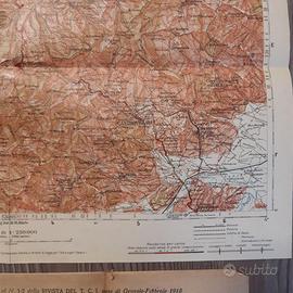 Cartina D'Italia Touring Club Italiano Potenza Dimensioni cartina cm. 37 x 50 Con busta originale touring club italiano Datata febbraio 1918 Sul retro pubblicita' ditta ERCOLE MARELLI & C. C00006361-615 mappa, carta, depliant