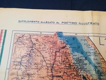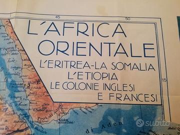 Cartina geografia de "L'Africa Orientale" supplemento al Mattino Illustrato - Nel retro foto d'epoca e testo della canzone "Salve Italia" - Dimensioni cm. 60 x 72