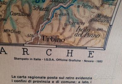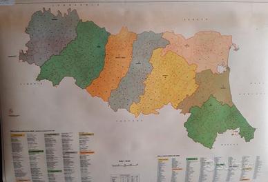 Cartina geografica Emilia Romagna edita da Ist. Geogr. De Agostino, scala 1:225.000 in carta cerata, anni "80", bifacciale, sul retro vi è la suddivisione dei comuni ed elenco alfabetico e numerico dei comuni stessi. Dimensioni 135 lungh. 93 h. Conservazione in ottimo stato. Euro 170 trattabili.