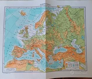 Cartina Europa Politica e sul retro fisica, misure 29 larghezza x 37 altezza. In scala 1: 20.000.000 Studio FBM Bologna. In carta plastificata.
