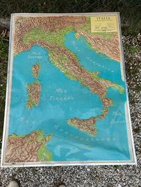 Mappa fisica plastificata dell’Italia, incorniciata. Prodotta da RICO Firenze.