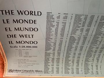 Cartina murale del mondo Edizioni cartografiche milanesi Scala 1:28.000.000 Vintage