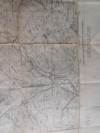 Cartina topografica originale da collezione dell' Istituto Geografico Militare, risalente al 1934, scala 1: 25000. Edizione storica prebellica di alta precisione, parte della "Carta d'Italia". Rappresenta la zona di Sestriere - Valle Susa, con dettagli fedeli del paesaggio montano e delle infrastrutture dell'epoca. Dimensioni 58x51 cm, dimensione adatte anche per essere incorniciata. Tracce del tempo come da foto.