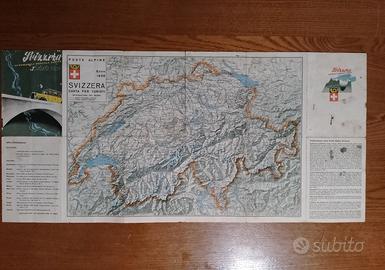 Cartina automobili postali alpine svizzera anno 1936. sono presenti alcune macchie ed abrasioni, visibili nelle foto.