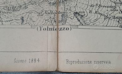Mappa geotopografica F. 14 della Carta d’Italia Paluzza (Nord-Ovest) – Tolmezzo Giugno 1894 n. 3 mappe geotopografiche Touring Club Italiano (F. 20 Adelsberg – F. 16 Lubiana – F. 14 ter Maniago) - inizio 1900 Istituto Veneto di Arti Grafiche dai tipi dell'Istituto Geografico Militare – Venezia 10€ al pezzo