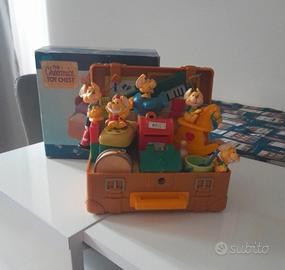 2. bellissima valigetta completa di tutti I suoi topolini e accessori,unico difetto è il fatto che i topolini siano appiccicosi. li ho puliti con l'alcool migliorando la situazione ma non risolvendola. entrambi e set hanno classici segni di usura che non ne intaccano la bellezza. i topolini in particolare hanno alcune parti di colore mancante e/o.quslche macchiolina di colore.
