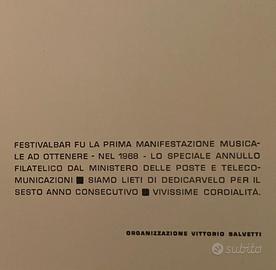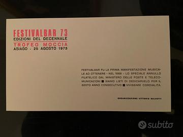 Cartolina commemorativa con busta affrancata originale annullo filatelico decennale Festivalbar 1973, Asiago.