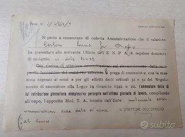 Cedo dalla mia collezione privata un documento postale ufficiale dell'Ente Nazionale Previdenza Statali, viaggiato nel 1952.