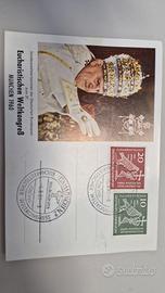 Cartolina e francobolli con annullo commemorativi del Conclave Eucarisitico del 1960 a Monaco di Baviera Papa Giovanni XXIII.