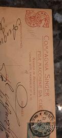 Rara cartolina pubblicitaria macchine da cucire Singer, con treno in transito a vapore, con fiume di operai all'esterno. vedi fotografie pubblicate sull'inserzione. lotto 525 .