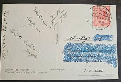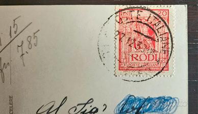 Cartolina con vista della città di Rodi, spedita 26 dicembre 1939, francobollo 20c poste italiane Rodi.