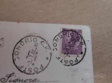 - Affrancatura: Francobollo da 25 Lire serie "Siracusana" (Viola).
