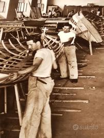 Cartolina storica originale in bianco e nero ,viaggiata nell'anno 1936 che ritrae l'officina Carpentieri delle scuole C.R.E.M di Pola cioè le Scuole dei Reali Equipaggi di Marina nella città di Pola in Istria che fu italiana dal 1918 al 1947.