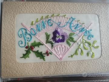 Cartoline degli anni 20 ricamate e scritte a mano. Da collezionismo. No perditempo. Vendo in blocco con album da raccolta.
