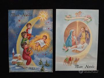 Lotto di 5 cartoline d'auguri Natalizi a tema religioso e tradizionale. Le cartoline mostrano scene classiche della Natività, inclusi angeli, la Sacra Famiglia, i Re Magi e pastori. Tutte riportano la scritta "Buon Natale" o "Buon Natale e Felice Anno" con uno stile pittorico/illustrato tipico delle produzioni vintage degli anni '60-'80. Ottime condizioni, integre e non utilizzate (non presentano scritte o francobolli). Ideali per collezionisti, appassionati di articoli vintage religiosi.