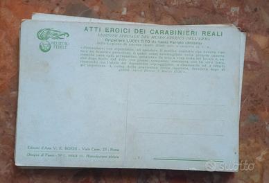 Bellissimo lotto di 11 cartoline d'epoca raffiguranti atti eroici dei Carabinieri Reali. Sono in buone condizioni, mostrano qualche segno del tempo ma sono ben conservate.