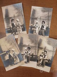 Stock di 5 splendide cartoline d'epoca a tema infanzia. Molto ben conservate.