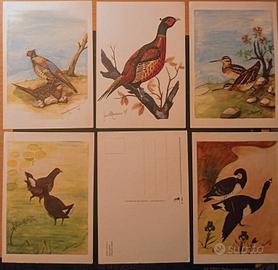 Lotto 6 Cartoline Vintage Illustrate – Serie “Uccelli” 1984 – Firmate Giulio Macerano