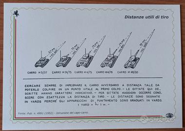 Le cartoline riproducono disegni tecnici estratti da pubblicazioni del passato, raffiguranti alcuni carri armati storici, schemi di azioni e prestazioni.