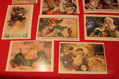 Cartoline Natalizie non viaggiate allegato omaggio Consigli Pratici anni 80. Lotto di 10 Cartoline a tema natalizio, con illustrazioni classiche e vintage con babbo natale, neve, alberi, famiglia, bambini ecc. Sono nuove mai viaggiate, ed erano allegati omaggio di rivista "Consigli Pratici" anni 80, Condizioni come da foto, viste e piaciute