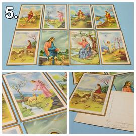 Set 5. Cecami serie 744? di 8 soggetti diversi religiosi, scene di Cristo, con bordo dorato, 10 euro
