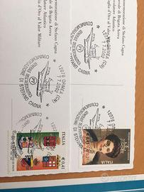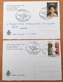 Vendo nr. 2 cartoline 7 luglio 2002: "Commemorazione del Generale di Brigata Aerea Stefano Cagna" medaglia d'oro al valor militare, illustrate da Tullio Pagliana, compreso relativo segnalibro. Ottimo stato, timbrate affrancate con francobolli: "Regina Elena di Savoia" e "Italia in missione di pace", del 2002
