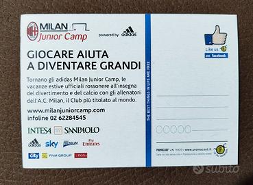 Milan Junior Camp:Volantino promozionale per i campi estivi ufficiali del Milan, che offrono esperienze di calcio e divertimento per bambini e ragazzi.