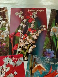 6 cartoline vintage fiori, con scritta "sinceri auguri ", retro senza scritte