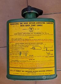 Vendo una cartuccia (ma ne ho altre a disposizione) vintage anni 50/60 di ricambio, per autorespiratori a ciclo chiuso usati anche dai vigili del fuoco Americani o dai minatori. Questa cartuccia è montata negli autoprotettori / autorespiratori della ditta americana, tuttora leader nel mercato internazionale, MSA.
