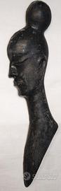 Scultura da parete in ceramica Firmata CAS (ceramica artistica Solimene, Vietri) , databile agli anni ’60–’70, raffigurante un busto femminile stilizzato dal forte impatto arcaico. La composizione verticale e la purezza del profilo richiamano l’iconografia egizia: collo allungato, linea del naso netta e continua, occhio chiuso in atteggiamento meditativo. La superficie presenta una finitura nera materica con effetto puntinato e leggere irregolarità. 📏 Dimensioni • Altezza: 55 cm • Larghezza massima: 15 cm ✔️ Ottime condizioni generali. Presenta lievi segni del tempo e piccole irregolarità di superficie. Nessuna rottura o restauro ✅ Spedizione sicura con imballaggio antiurto ✅ Per ulteriori informazioni non esitate a contattarmi Mercatino dell'antiquariato Tiriciclo , Salerno