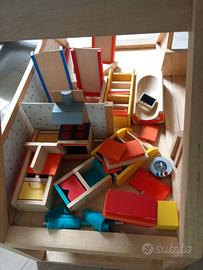 Casa bambole in legno con accessori ed arredamenti