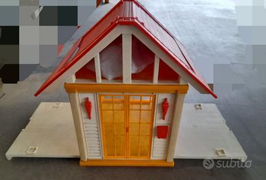 Iconica casa campagna per Barbie, edizione del 1982. Un pezzo da collezione per rivivere i momenti più belli. - Design a due piani. - Terrazza con ringhiera. - Porta d'ingresso gialla.