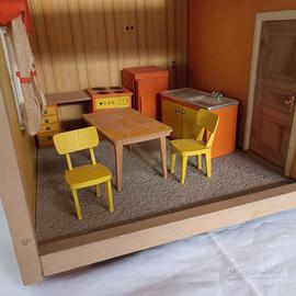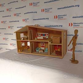 Casa delle bambole anni 70 Lundbay completa di arredo, moquette, tapezziere,